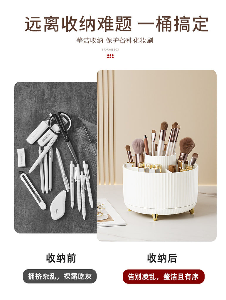 Crafted from premium-quality plastic, the organizer features a smooth 360-degree rotating base, allowing easy access to all your items without clutter. Its modern luxury design enhances your desktop while keeping pens, makeup brushes, skincare products, and accessories neatly organized and within reach.