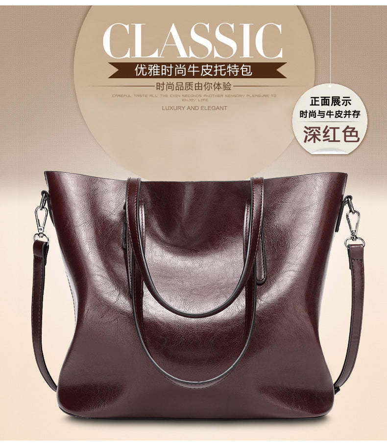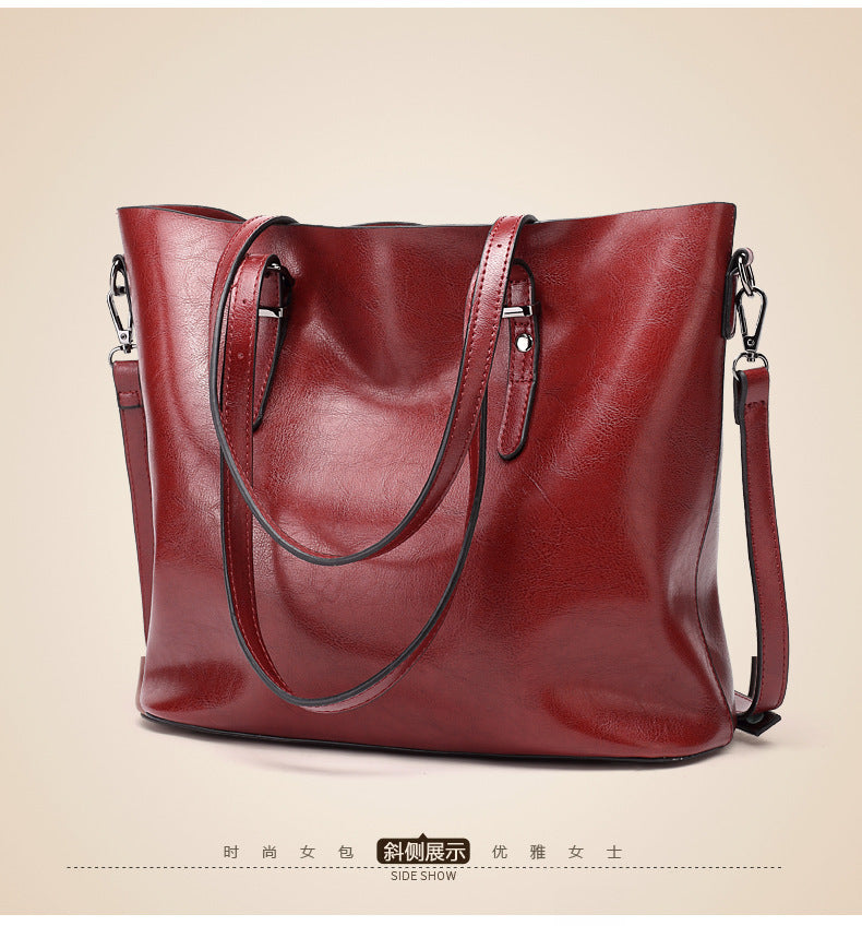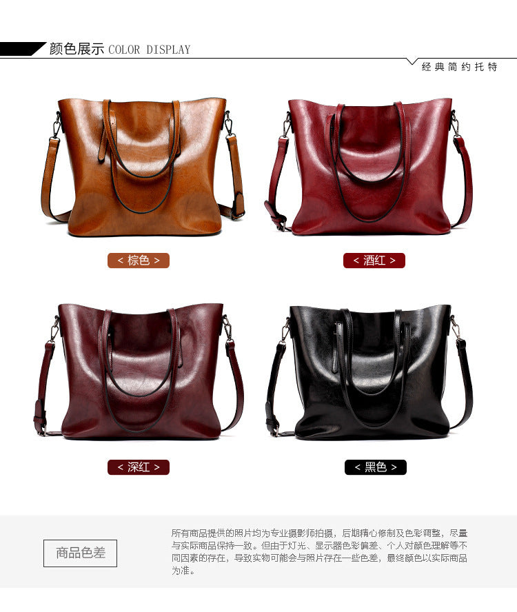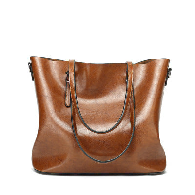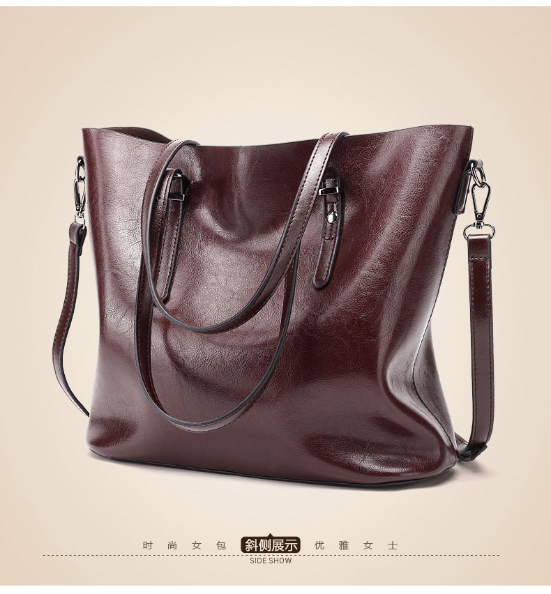 Oil Wax Leather Large Tote – Elegant Shoulder Bag for Women