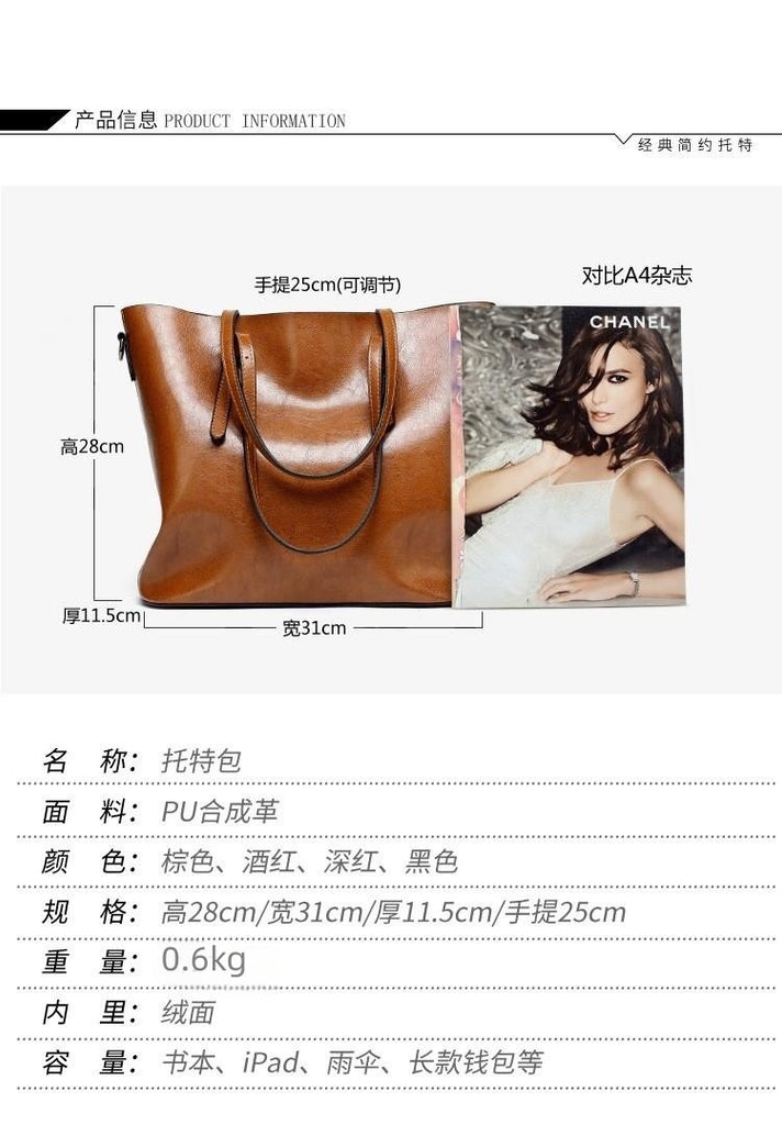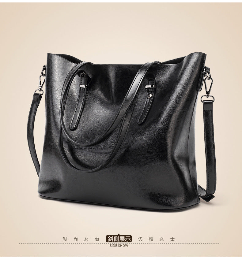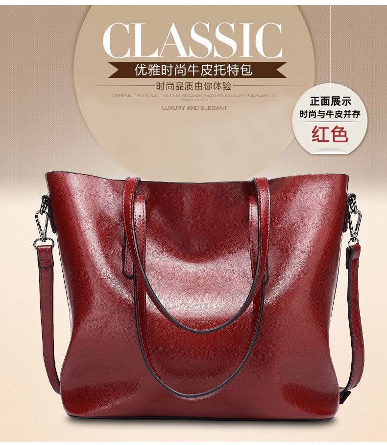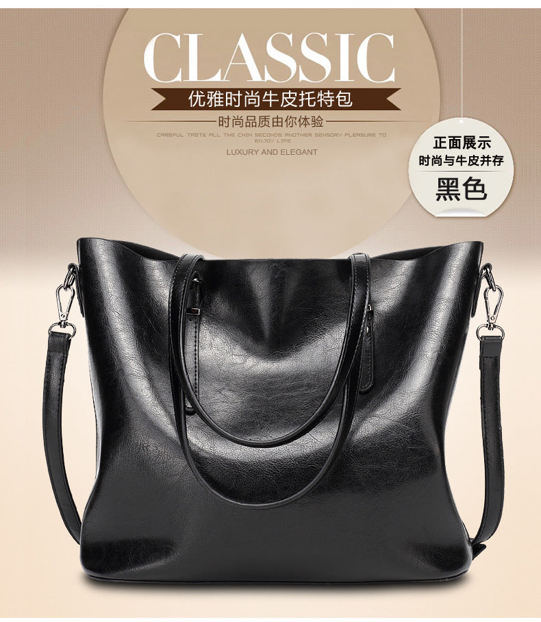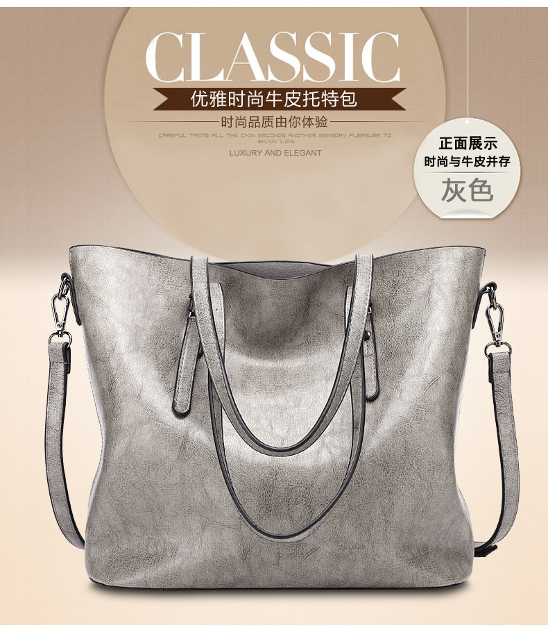 Oil Wax Leather Large Tote – Elegant Shoulder Bag for Women